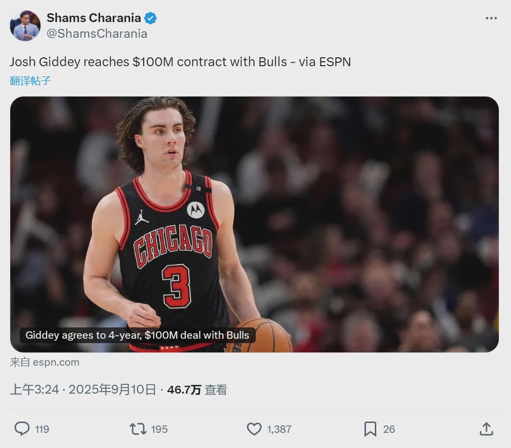 也是不容易啊,Shams最近真的没啥好报的,可算是有一份亿元合同值得他报道了。