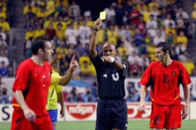 这个问题非常简单:比利时在2002年日韩世界杯1/8决赛对巴西的比赛中先入1球,但是被当值主裁判普伦德加斯特吹掉了,理由是进球者威尔莫茨对巴西中卫罗克·儒尼奥尔犯规。然而,威尔莫茨真的犯规了吗?