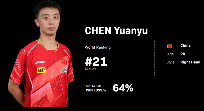 陈垣宇世界排名第21今年20岁,他跟温瑞博、黄友政同为国乒男队的未来之光,他在2月27日的WTT新加坡大满贯男单1/8决赛一度爆冷淘汰了雨果-卡尔德拉诺,当时的雨果世界排名还是第三,也正是因为被陈垣宇爆冷雨果的世界排名才下滑到第四。没想到短短12天过去,雨果就完成了逆转复仇。