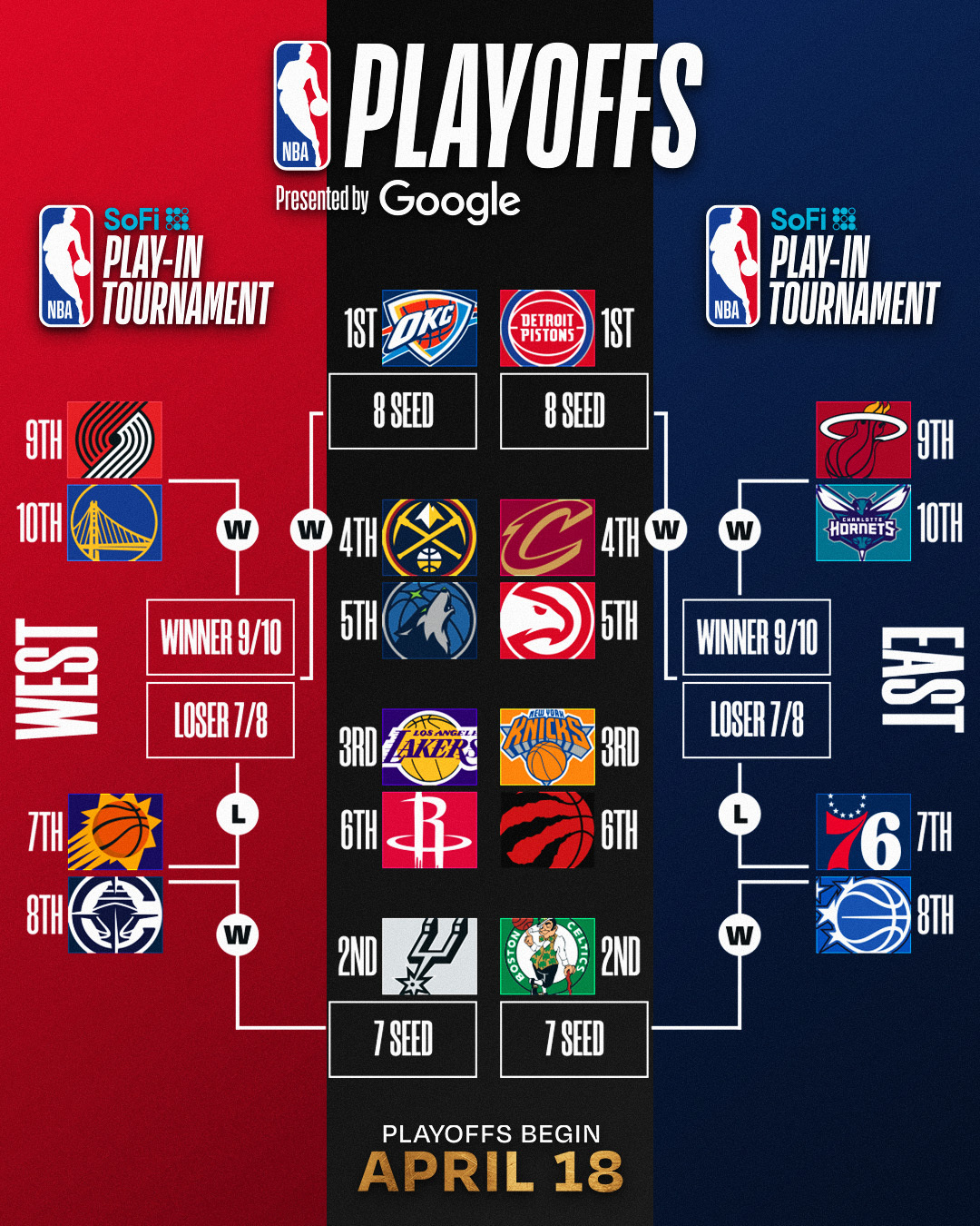 🧐今日锁定情况浅述:1、太阳输球,掘金锁定一个季后赛席位(西部前6);2、活塞自己赢球,锁定中部赛区冠军,同时意味着骑士失去理论上争夺东部第一的可能;3、火箭赢球+自己输球,快船被锁在附加赛区(西部第7-10)。4、湖人锁定一个季后赛席位,并锁定太平洋赛区冠军。截止今日赛后西部排名截止今日赛后东部排名✍️今日排名追逐分析:1、火箭战绩追平森林狼,后者凭借对阵...